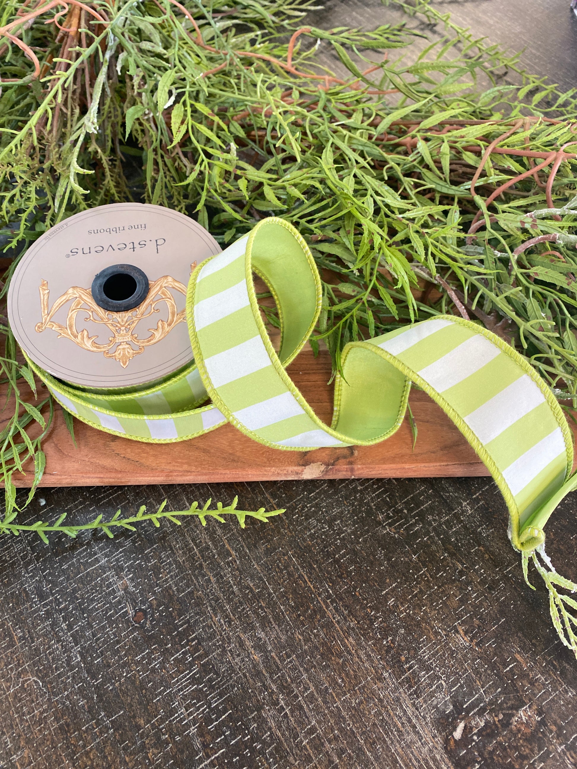 1.5"x10yds Green White Stripe Taffeta Dupion Back, Green white