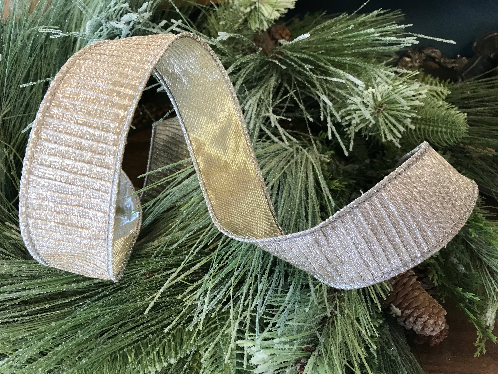 1.5"x10yds Pleated Lame, Platinum