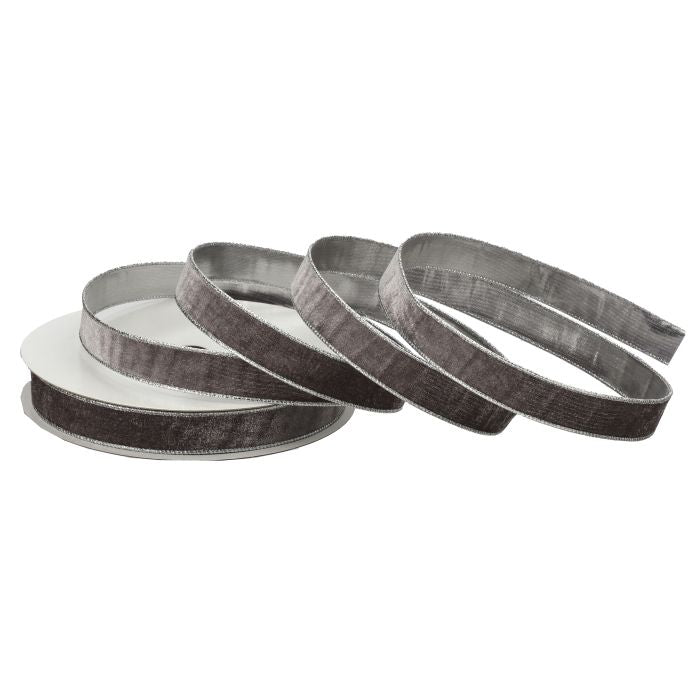 1"x20yds Wired Velvet Ribbon w/ Metallic Edge Silver