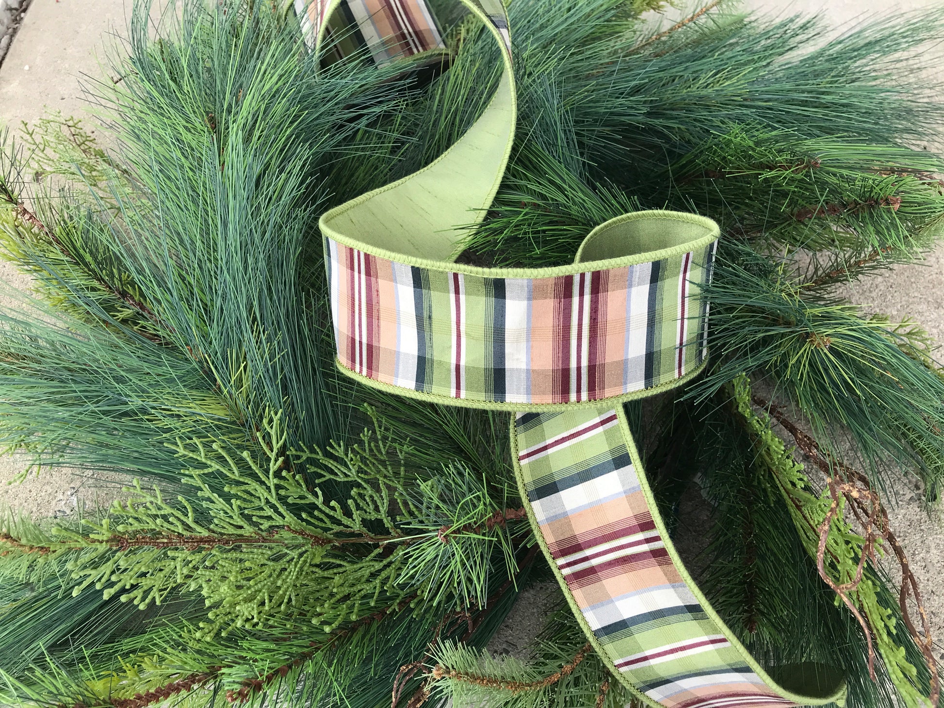 2.5"x 10yds Madras Plaid Ribbon, Ivory, Green, & Cranberry