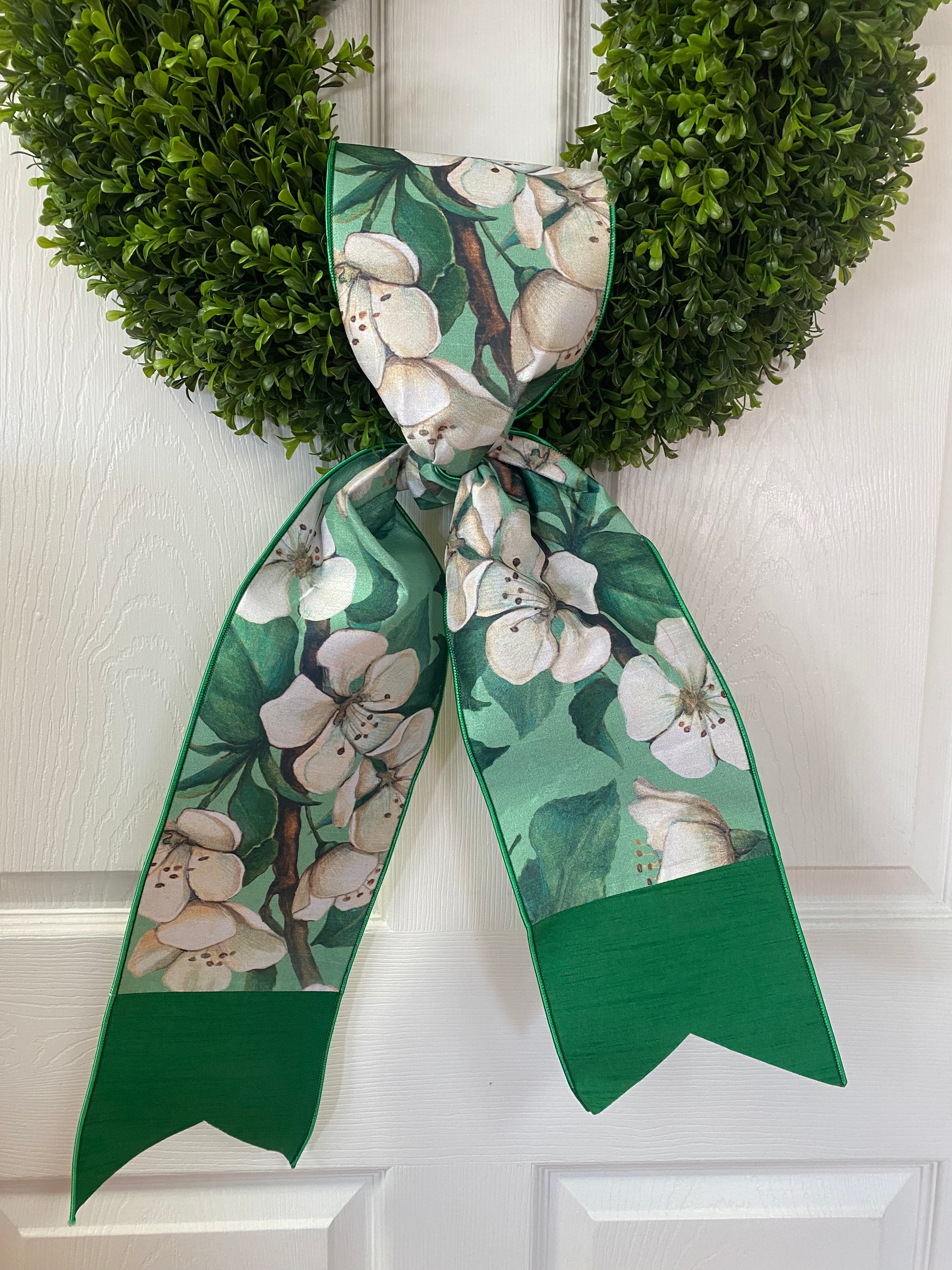 6”x 60” Dupion Banner/ Wreath Sash Dogwood w/ Celedon Back