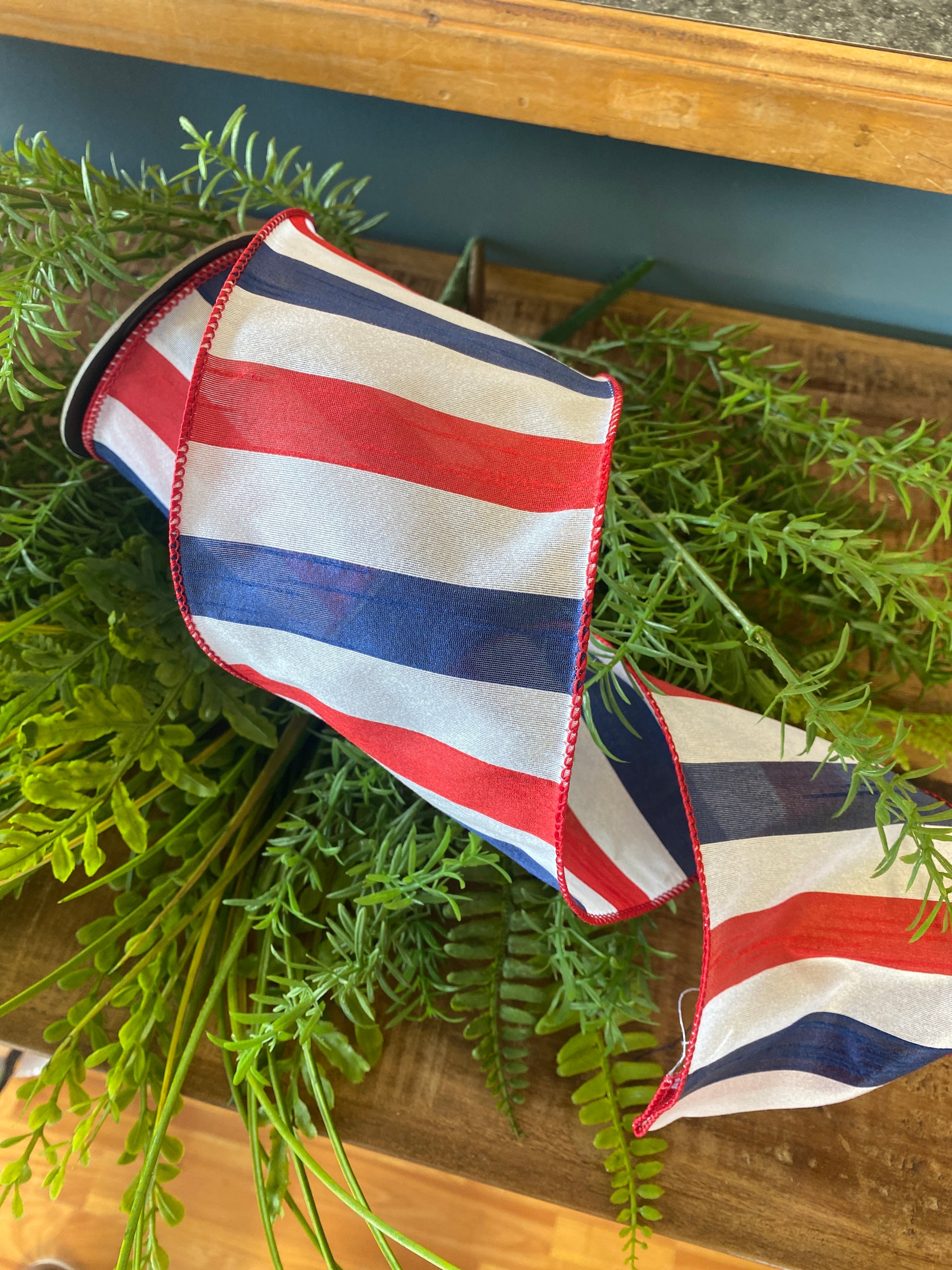 American Dupioni Bar Wired Edge, Red/White/Blue 4"x10yds