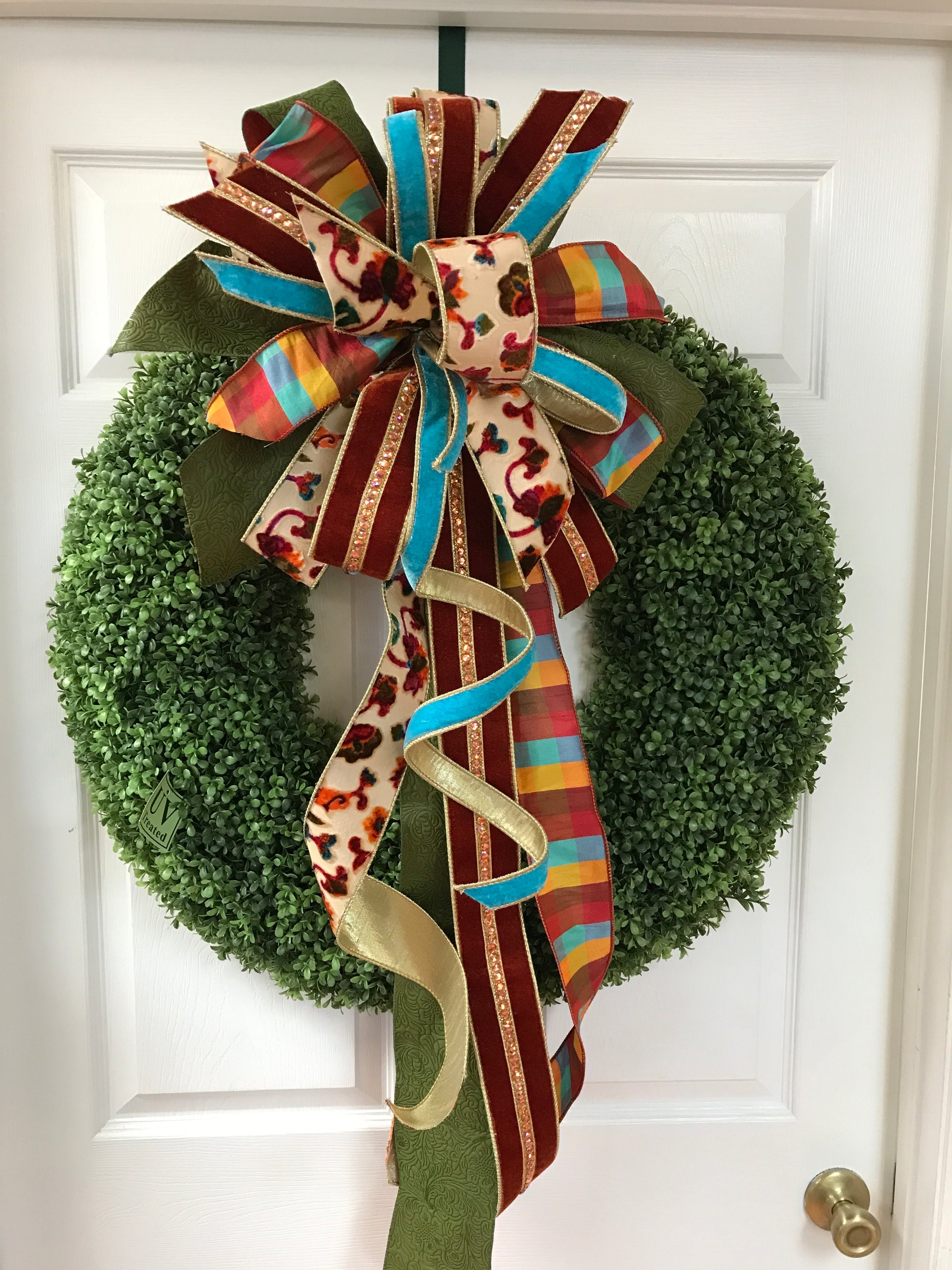 Large Multi Colored Fall Floral Velvet Designer Bow (Bow Only)