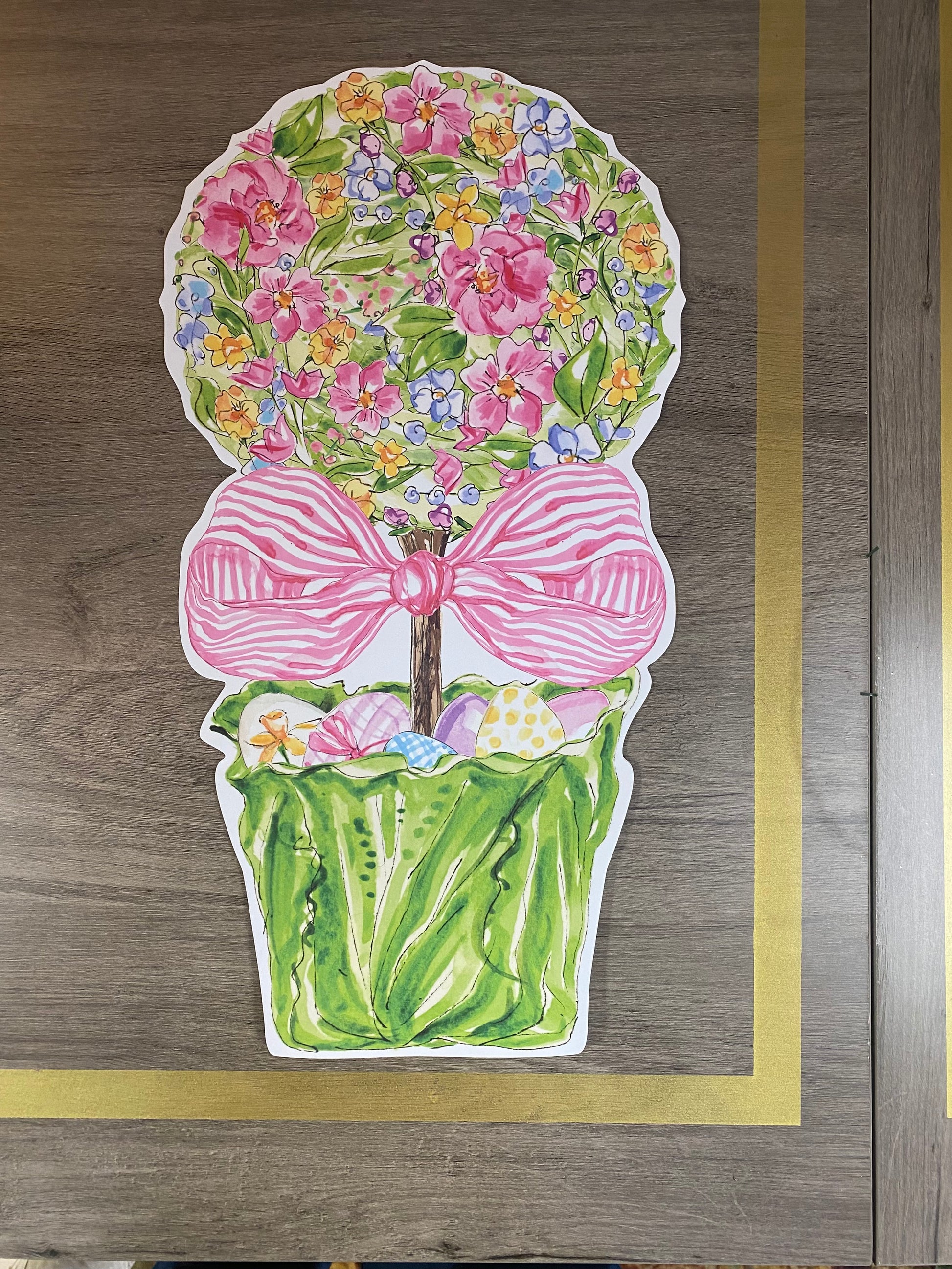 Posh Die Cut Placemat Floral Topiary With Pink Bow & Eggs