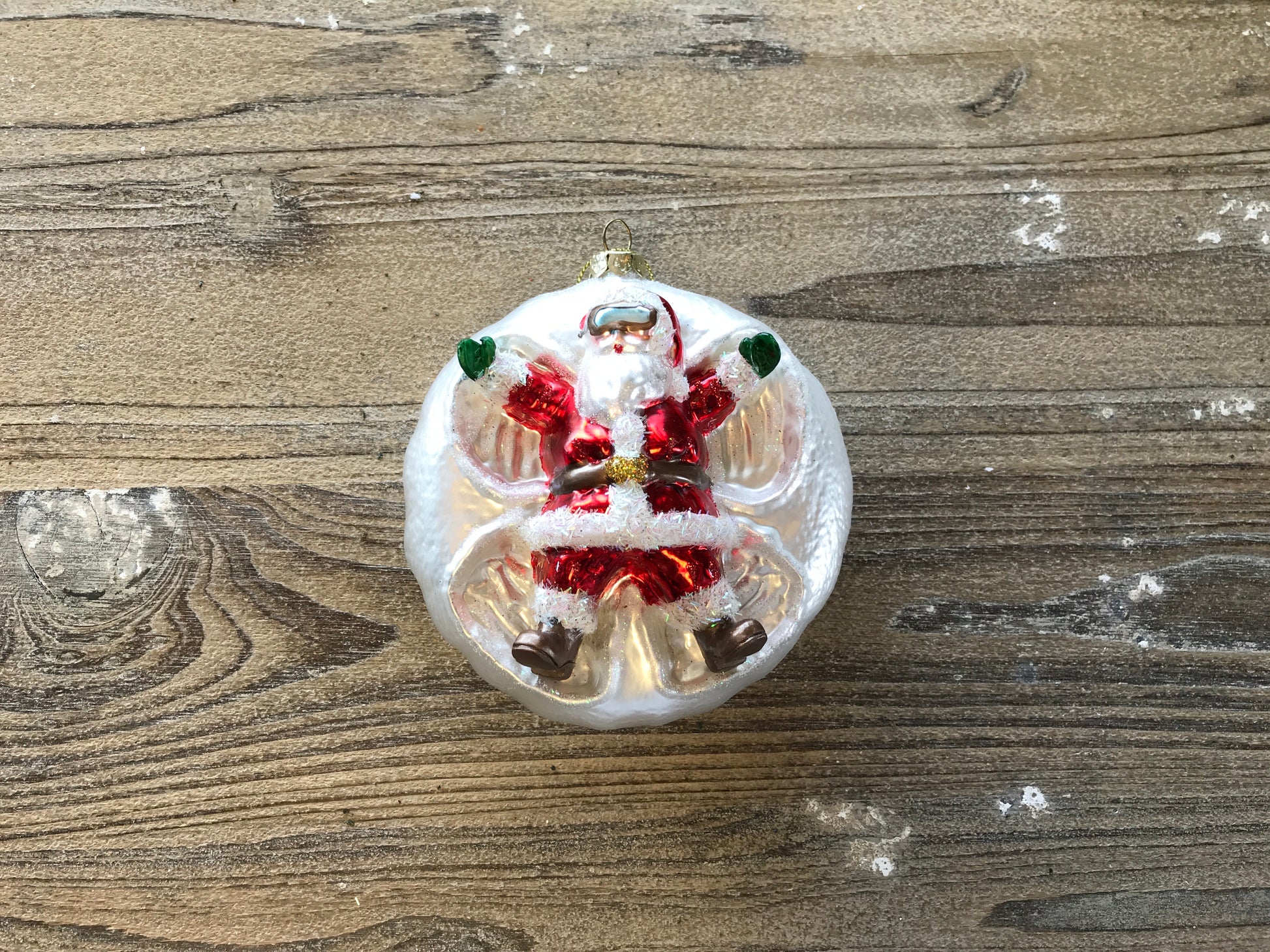 Santa/Snow Angel Ball Ornament 4”D Glass